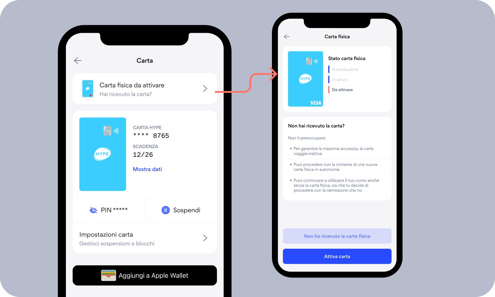 Attivata: hai attivato correttamente la tua carta fisica e puoi iniziare ad utilizzarla.